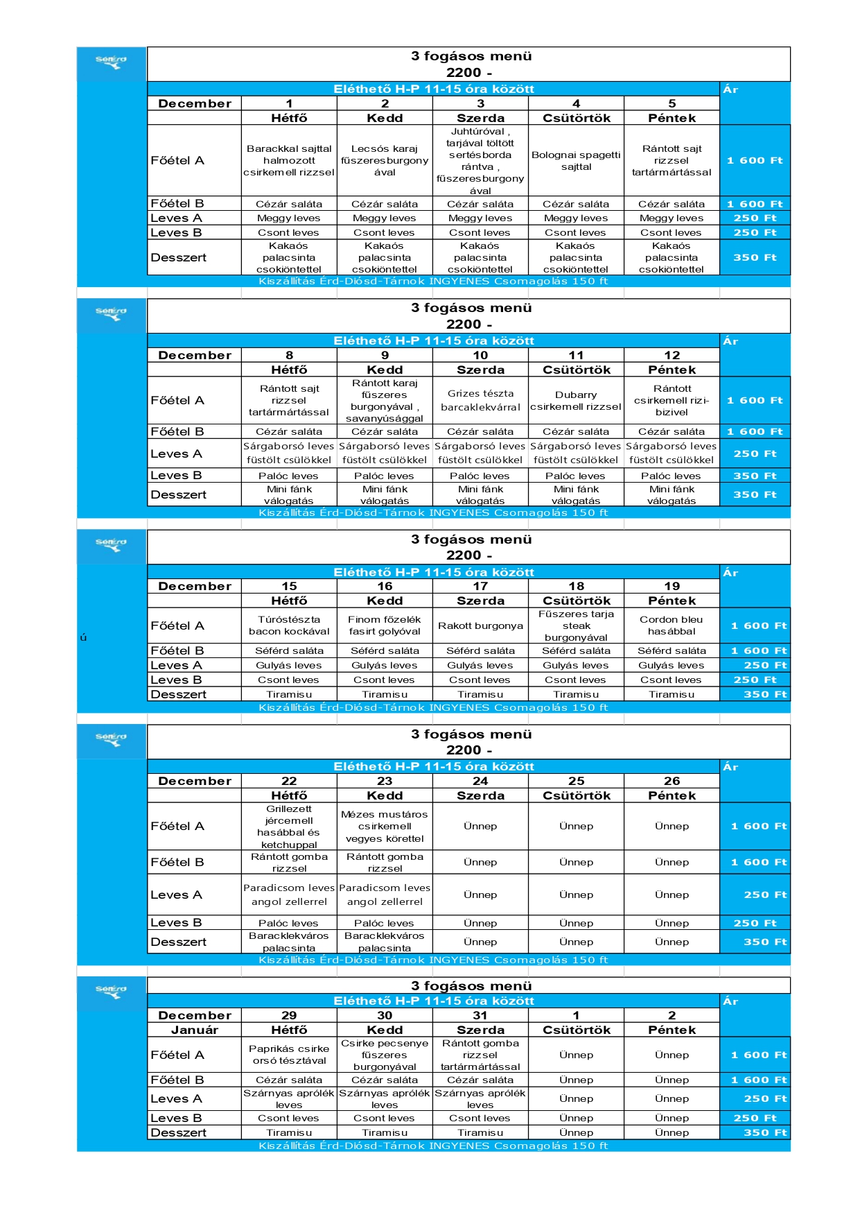 Jól ismert ételek akciós áron H-P 11-15 óráig.